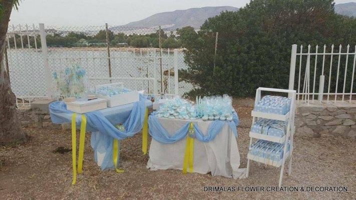 Γεμάτη συναισθήματα και μικρές εκπλήξεις…… Οργανώνετε την βάπτιση του παιδιού σας; Εμπιστευθείτε τις ομορφότερες στιγμές σας, και κερδίστε τις εντυπώσεις!!! Οργανώστε τα πάντα μέσα από μία εταιρεία που θα αναλάβει τον στολισμό της βάπτισης του παιδιού σας υπεύθυνα και με απόλυτη συνέπεια. Κλείνοντας ένα ραντεβού στον χώρο μας, μπορούμε να σας Δώσουμε λύσεις και ιδέες για ότι χρειάζεστε, χωρίς να χάσετε πολύτιμο χρόνο, χωρίς να αγχωθείτε και φυσικά δίνοντας σας λύσεις που θα αναποκρίνονται στο δικό σας budget για την βάπτιση του μωρού σας προτείνοντάς σας ιδέες