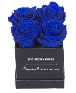 4 μπλε τριαντάφυλλα forever roses σε τετράγωνο κουτί!