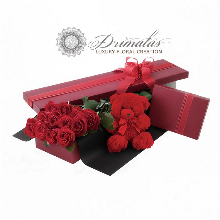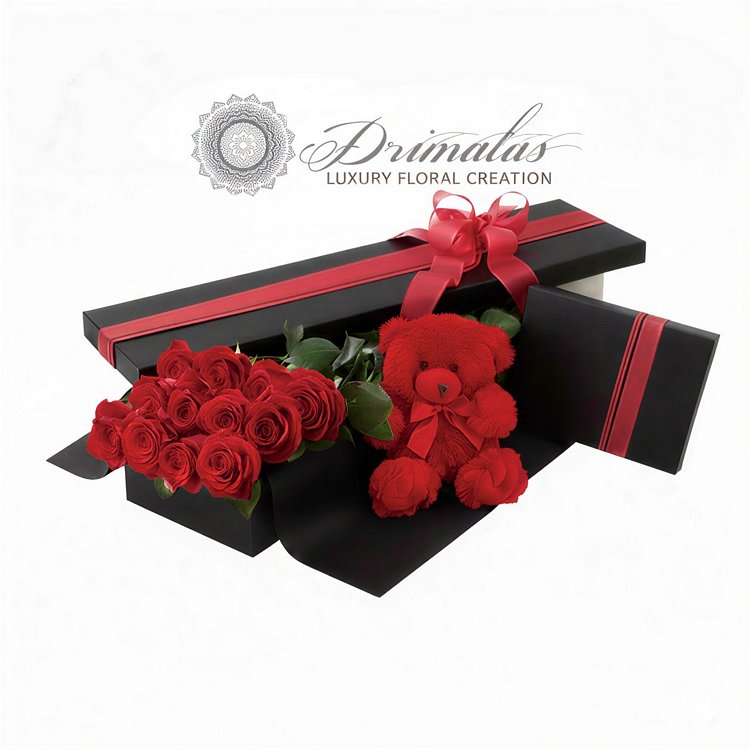Κόκκινα τριαντάφυλλα + luxury box + αρκουδάκι = game over