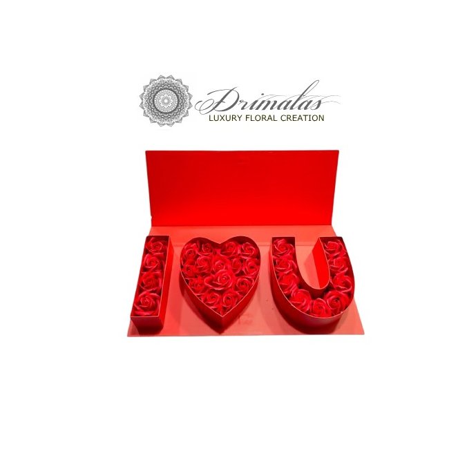 Η Love Box “I ❤️ U” μέ αρωματικά σαπουνένια τριαντάφυλλα είναι από εκείνα τα δώρα που δεν χρειάζονται πολλά λόγια. Μόλις ανοίγει το κουτί, το μήνυμα είναι ξεκάθαρο, δυνατό και συναισθηματικό. Κόκκινα τριαντάφυλλα τοποθετημένα με απόλυτη ακρίβεια σχηματίζουν το “I ❤️ U”, μέσα σε ένα πολυτελές κόκκινο κουτί με σατέν κορδέλα. Είναι το είδος του δώρου που δεν περνάει απαρατήρητο και δεν ξεχνιέται.